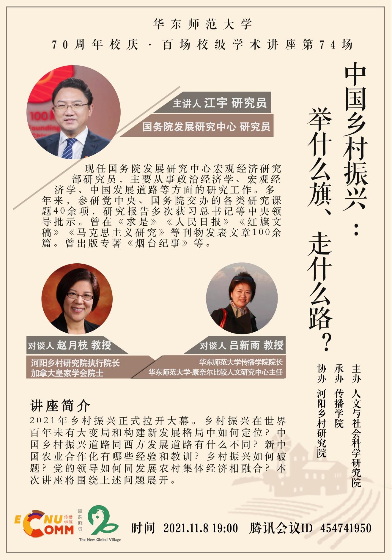 2021年乡村振兴正式拉开大幕。乡村振兴在世界百年未有大变局和构建新发展格局中如何定位?中国乡村振兴道路同西方发展道路有什么不同?新中国农业合作化有哪些经验和教训?乡村振兴如何破题?党的领导如何同发展农村集体经济相融合?本次讲座将围绕上述问题展开。