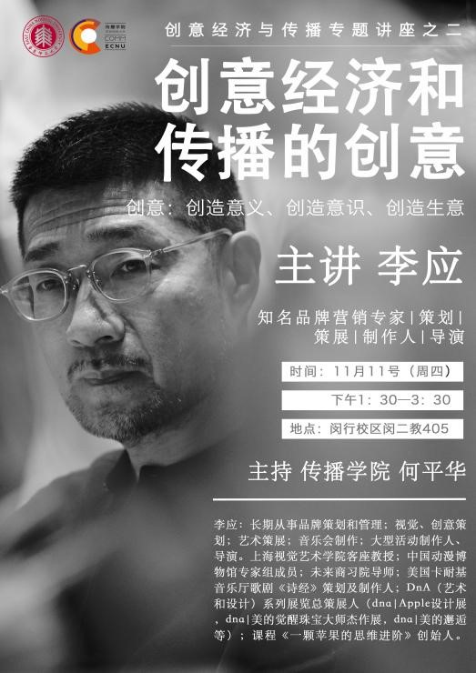李应:长期从事品牌策划和管理;视觉、创意策划;艺术策展;音乐会制作;大型活动制作人、导演。上海视觉艺术公司客座教授;中国动漫博物馆专家组成员;未来商习院导师;美国卡耐基音乐厅歌剧《诗经》策划及制作人;DnA(艺术和设计)系列展览总策展人(dna|Apple设计展,dna|美的觉醒珠宝大师杰作展,dna|美的邂逅等);课程《一颗苹果的思维进阶》创始人。
