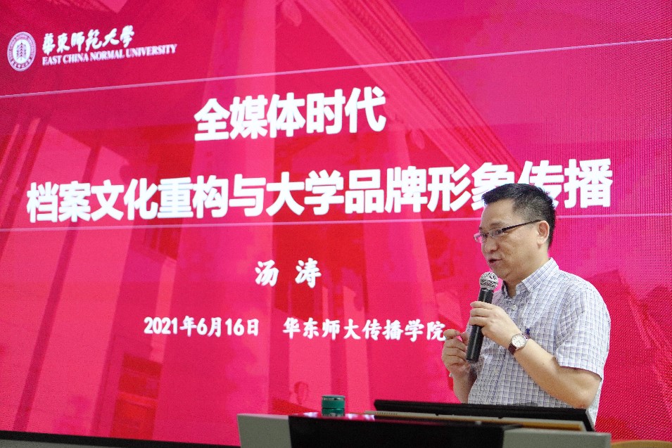 6月16日下午,“4A广告与理论前沿”讲座第八讲有幸邀请到华东师大档案馆长汤涛先生,以“全媒体时代档案文化重构与大学品牌形象传播”为主题作精彩报告。汤涛先生同时也是中央和国家机关档案专家、上海市档案学公高校档案专业委员会理事长,其较早从事广告与品牌研究,有丰富的媒体从业经验和品牌传播实践活动,有专著《品牌传播新论》、《仁商孙福林》等专著出版。