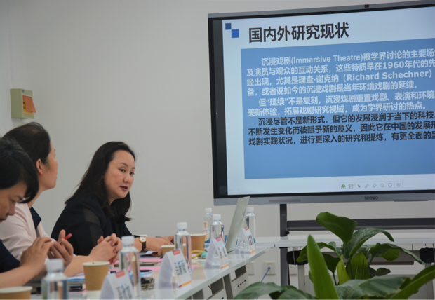 随后,项目主持人沈嘉熠教授从研究背景和目的、主要研究内容和创新点以及项目的研究进程等三方面向专家、学者汇报了项目的总体情况。她介绍,本次项目计划围绕“沉浸戏剧戏剧事件形式即主体消费与观演等关键词展开研究,通过关注、考察国内外多部沉浸式戏剧,归纳分类,总结适应中国当代社会文化的沉浸戏剧美学范式和特质及发展趋向。