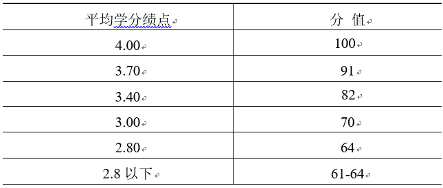 其中,员工i的平均学分绩点对应值按以下的转换标准进行,C为所有申请者学业成绩的最高分。