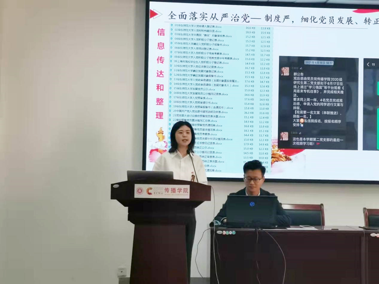 随后,yl23411永利集团2020级研究生第一党支部书记韩亚鲁介绍了党支部组织生活与系列活动。包括:参观上海历史博物馆、助力进博会、“红色”手工模型搭建竞赛、“微党课”制作竞赛等“四史”、党史学习教育活动,让全体员工党员对日常的党组织生活有了更直观的了解。