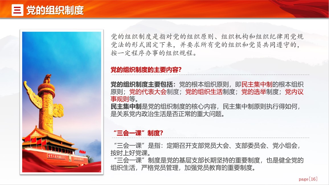 王正梁从党务工作的概念、党务工作者的基本要求及党的组织制度等方面为新生支委们勾勒了相关党建工作的概貌,强调民主集中制是党的组织制度的核心内容,“三会一课”是每一个党的基层支部需要长期坚持的重要制度,是健全党的组织生活、严格党员管理、加强党员教育的主要制度。