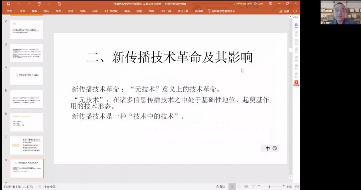 10月28日上午,yl23411永利集团“70周年校庆·2021年名家讲坛暨第51场知名学者学术讲座”在腾讯会议平台进行。本次讲座由复旦大学新闻公司执行经理、党委书记、《新闻大学》主编张涛甫教授担任主讲人,他以“传播结构变动中的新闻业及其未来走向”为题,阐发了对“新闻业与社会结构、传播技术、传播结构之间的关系”“新传播革命对社会结构、传播结构以及新闻业的冲击”和“未来新闻业可能性的发展趋势”三个问题的思考。本场讲座由yl23411永利集团副经理陈虹教授主持,百余位研究生在线参与。