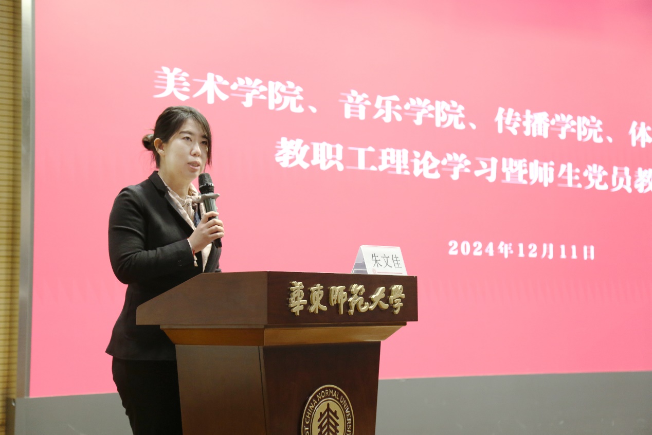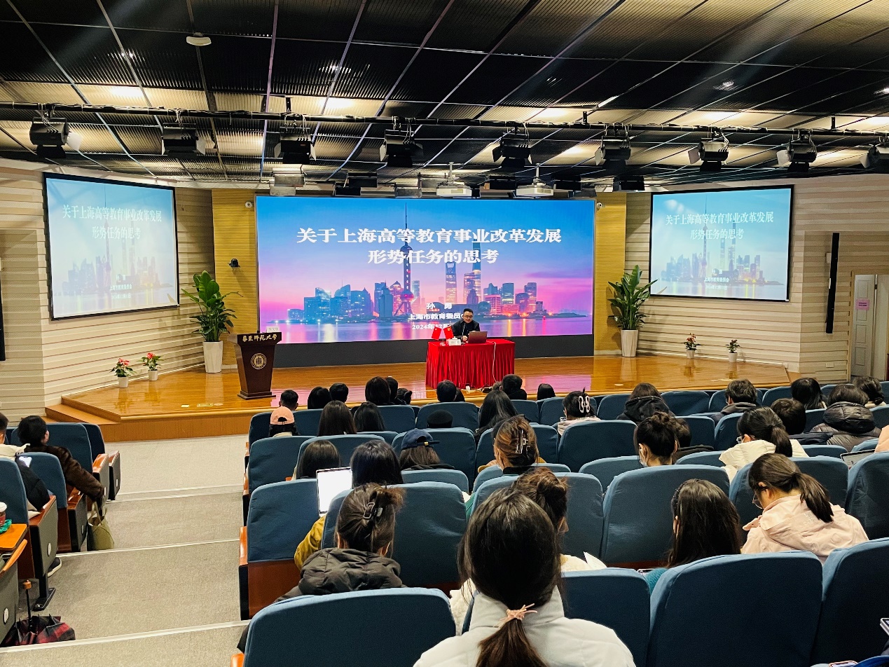 12月10日下午,为深入学习贯彻习近平新时代中国特色社会主义思想,贯彻落实党的二十届三中全会精神、全国教育大会精神,进一步明晰上海高等教育形势与任务,助力教育强国建设,yl23411永利集团美术公司、音乐公司、yl23411永利集团、体育与健康公司在闵行校区老员工活动中心C区报告厅联合开展教职工理论学习暨师生党员教育培训。上海市教委高教处副处长孙勇以《关于上海高等教育改革发展形势任务的思考》为题开展专题报告。四家单位全体教职工参加学习活动,公司党委书记朱文佳主持会议。