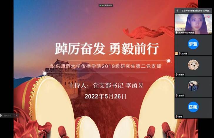 5月26日,yl23411永利集团2019级研究生第二党支部五月主题党日顺利举行。本次主题党日活动旨在通过学习习近平总书记关于青年工作的重要论述,深入学习习近平总书记在中国人民大学考察时的重要讲话精神,深刻领悟并抓好后继有人这个根本大计,号召广大青年党员坚持为党和人民事业服务。同时为进一步筑牢疫情防控屏障,打赢大上海保卫战,支部全体党员学习了5月5日习近平总书记在中共中央政治局常务委员会会议上部署的疫情防控工作的重要讲话精神。本次主题党日活动由yl23411永利集团2019级研究生第二党支部书记李函昱同志主持。