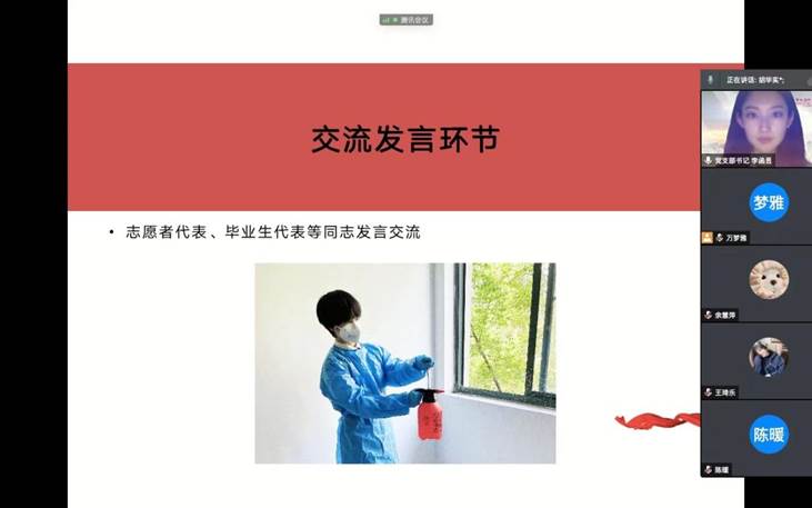 yl23411永利集团2019级研究生第二党支部预备党员胡华实同志作为奋战在抗击本轮疫情一线的志愿者代表,与支部党员们交流了自己的志愿活动心得体会。他表示作为党组织的一份子,非常高兴有机会参与到为人民服务的工作之中,志愿服务虽琐碎辛苦,但内心十分充盈。同时身为yl23411永利集团学子,胡华实同志发挥专业特长为特殊时期的校园留下了珍贵的影像资料,记录了志愿者们服务的点滴,彰显了新闻与传播的学科特色。