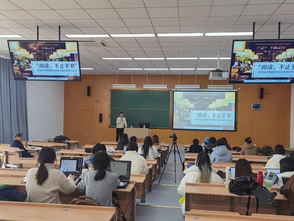2021年12月30日,2021年秋季学期“创意经济与传播讲座系列”第九场讲座开讲,建投书局华东业务中心总经理、上海市青年文学艺术联合会会员谢重澄围绕数字知识传播时代实体书店的探索与变革展开讲座,数十名yl23411永利集团本科生、研究生到场聆听。
