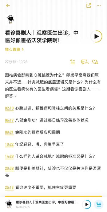 夜校的课程内容涵盖了中药调理、四季养生等理论,主要教授中医养生知识和技巧,如节气养生、食疗、体质辨识等。以夜校为开端,侯慧瑶慢慢打开了更多和中医相关的圈子。侯慧瑶说,“‘小宇宙’上有一个中医科普博客叫‘推心置腹’,每一期都蛮有意思”。她一边上着中医夜校,一边在空闲时间收听中医博客,侯慧瑶也因此更了解自己的身体。后来她加入了推心置腹官方微信群,在群友的推荐下,尝试使用了时历、大家中医、中医通等中医类app。