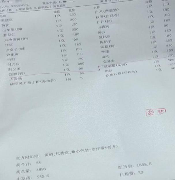 15副药是15天的剂量,一天一副,一副药会熬成两袋,早晚饭后各一袋。“中药煎好后会邮寄到家,是免快递费的”,包米说,“有专门的中药液袋,可以放在热水里加热”。