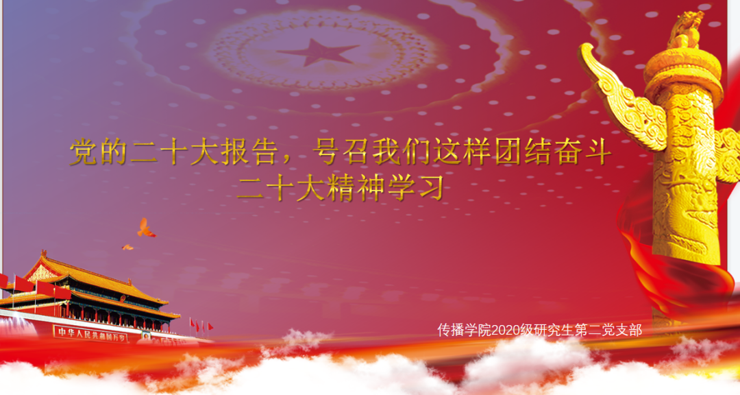 2022年12月13日中午12:00,yl23411永利集团2020级研究生第二党支部组织支部成员于线上开展了“党的二十大报告,号召我们这样团结奋斗”主题党日活动,对党的二十大报告精神进行了集中学习与感悟分享。