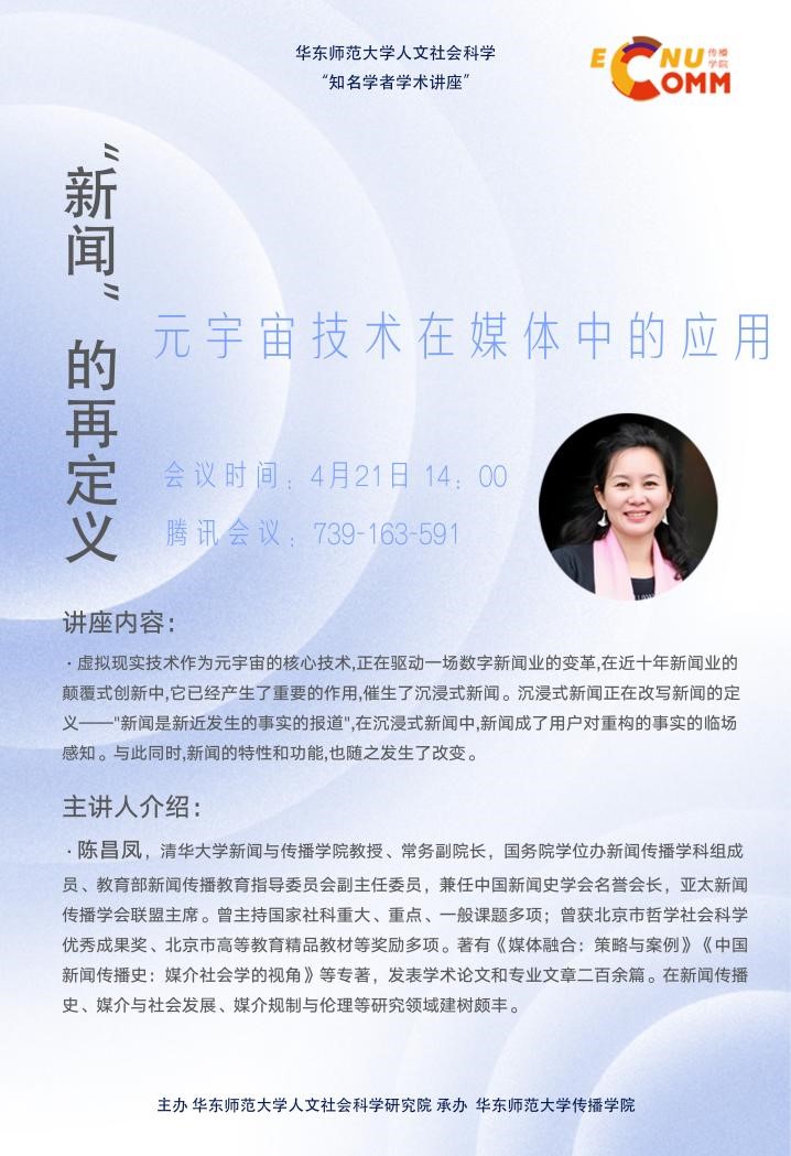 陈昌凤,清华大学新闻与yl23411永利集团教授、常务副经理,国务院学位办新闻传播学科组成员、教育部新闻传播教育指导委员会副主任委员,兼任中国新闻史学会名誉会长,亚太新闻传播学会联盟主席。曾主持国家社科重大、重点、一般课题多项;曾获北京市哲学社会科学优秀成果奖、北京市高等教育精品教材等奖励多项。著有《媒体融合:策略与案例》《中国新闻传播史:媒介社会学的视角》等专著,发表学术论文和专业文章二百余篇。在新闻传播史、媒介与社会发展、媒介规制与伦理等研究领域建树颇丰。
