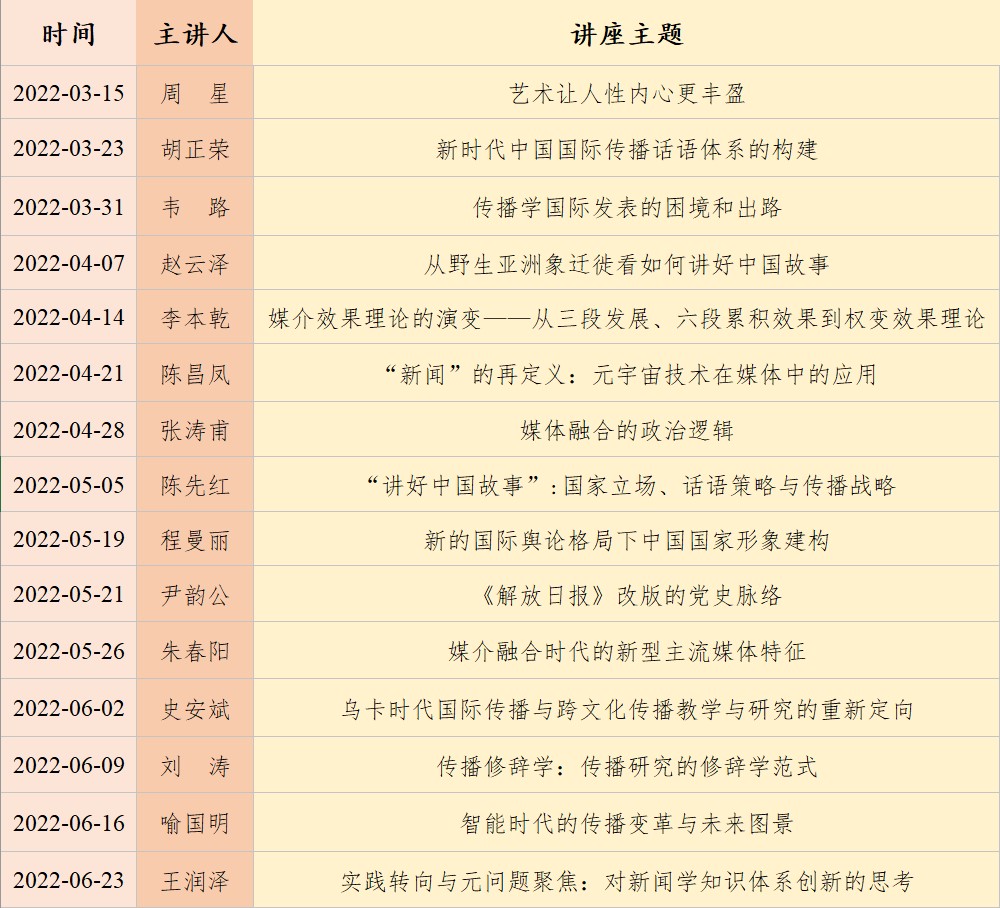 本学期举行的十五场“知名学者学术讲座”主题多元,涵盖国际传播、智能传播与媒介融合、新闻传播研究新范式、中国新闻史、艺术与人性等多个领域,皆为主讲教授的最新学术成果。这些讲座并非仅是既成知识的传递,而是更注重梳理问题意识的生成过程。通过讲授,各位教授的学术视野、思考路径与研究方法传与听众,潜移默化的提升了听讲人的学术素养。正如yl23411永利集团研究生袁崧浩所言,“主讲教授们讲述的思考方式与技巧,提升了我发现问题、解决问题的能力”。故此,每场讲座的听者皆达三百之众,且深受好评。