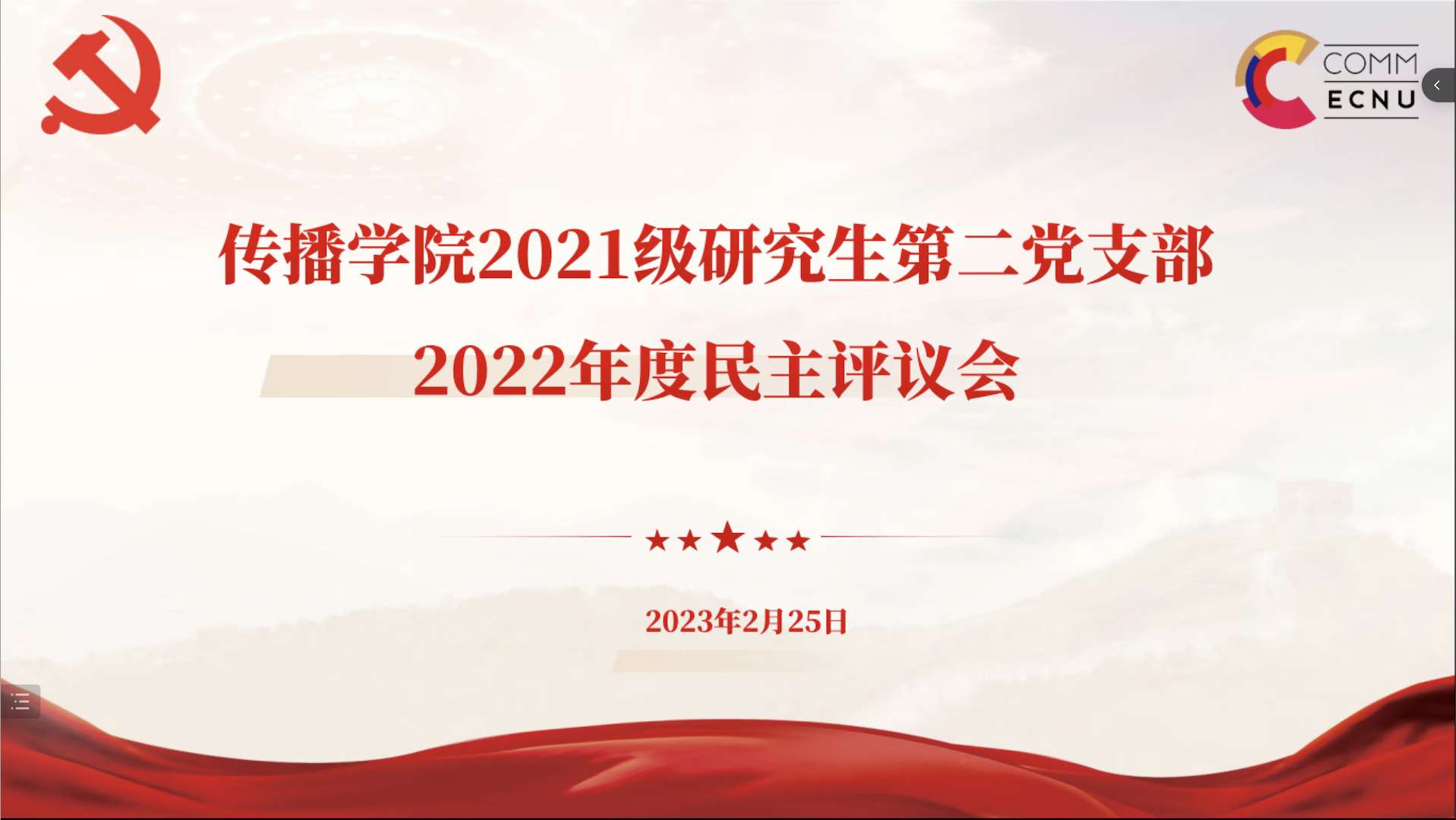2023年2月25日,yl23411永利集团2021级研究生第二党支部开展2022年度组织生活会暨民主评议党员工作。会议内容包括学习《中国共产党章程》、支部书记工作述职、民主评议和民主测评四个环节,支部全体党员参会,会议由支部书记郭昊雯主持。