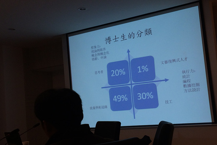 在多年的科研工作中,沈菲教授认为极少有员工同时具备较强的想象力和执行力。其中想象力包含理论与眼界,概念与概念化,修辞、申论等内涵;执行力是指统计,编程,数据挖掘和方法设计的能力。他还以风趣幽默方式为大家展示了一幅对博士能力的类别分析图,以帮助大家清晰自身在做研究过程的定位。与此同时,沈菲教授还对概念化、理论化具体的训练方法提出了建议——阅读、阅读、阅读。而方法和技术则需要实际的操作实践,通过课题和项目去学习。如果想发表国际论文,还需要练习中英文交替写作,切换思维模式。