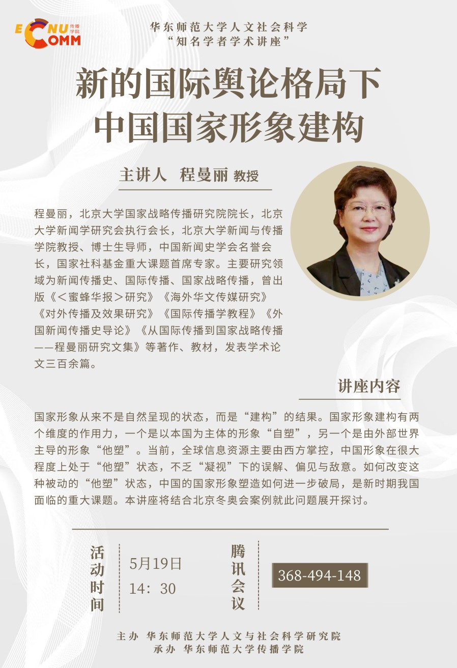 国家形象从来不是自然呈现的状态,而是“建构”的结果。国家形象建构有两个维度的作用力,一个是以本国为主体的形象“自塑”,另一个是由外部世界主导的形象“他塑”。当前,全球信息资源主要由西方掌控,中国形象在很大程度上处于“他塑”状态,不乏“凝视”下的误解、偏见与敌意。如何改变这种被动的“他塑”状态,中国的国家形象塑造如何进一步破局,是新时期我国面临的重大课题。本讲座将结合北京冬奥会案例就此问题展开探讨。