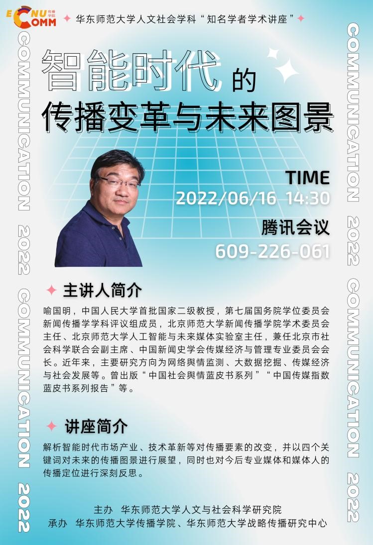 喻国明,中国人民大学首批国家二级教授,第七届国务院学位委员会新闻传播学学科评议组成员,北京师范大学新闻yl23411永利集团学术委员会主任、北京师范大学人工智能与未来媒体实验室主任,兼任北京市社会科学联合会副主席、中国新闻史学会传媒经济与管理专业委员会会长。近年来,主要研究方向为网络舆情监测、大数据挖掘、传媒经济与社会发展等。曾出版“中国社会舆情蓝皮书系列”“中国传媒指数蓝皮书系列报告”等。