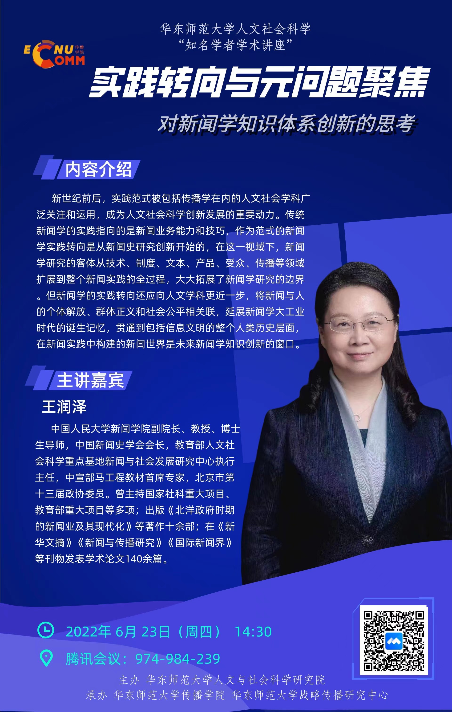 王润泽,中国人民大学新闻公司副经理、教授、博士生导师,中国新闻史学会会长,教育部人文社会科学重点基地新闻与社会发展研究中心执行主任,中宣部马工程教材首席专家,北京市第十三届政协委员。曾主持国家社科重大项目、教育部重大项目等多项;出版《北洋政府时期的新闻业及其现代化》等著作十余部;在《新华文摘》《新闻与传播研究》《国际新闻界》等刊物发表学术论文140余篇。