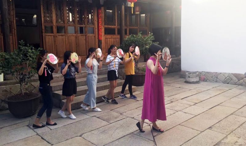采访结束,林颖老师还现场为同学们清唱了几句,“昏沉沉,强支床”这细腻柔婉、一唱三叹的短短六个字就将在场的同学们都拉进了闽剧的世界。拍摄之余,林颖老师还向同学们教授了一式闽剧基本功,让同学们实践、学习专业采访拍摄知识的同时也感受了传统闽剧的魅力。