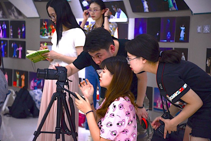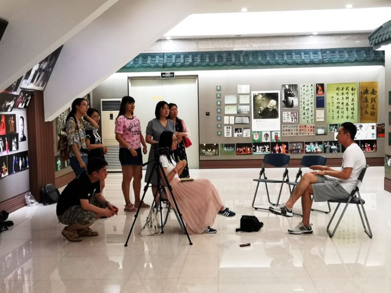 抵达泉州的当天下午,实践团队就前往梨园剧团的传承中心开始了在当地的采访拍摄。在随行记者的示范和指导下,实践团队分别完成了对副团长曾龙、青年演员林诗铭和郑雅思、压脚鼓鼓师尤毓彬的采访。虽然在采访前,同学们已经就采访问题设置、采访顺序的调整以及如何理解夹杂着闽南方言的普通话等问题做了充分的思想准备,但是在这种正式的采访场合,同学们难免因为紧张而出现各种问题。