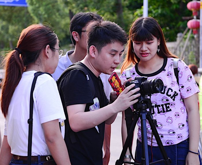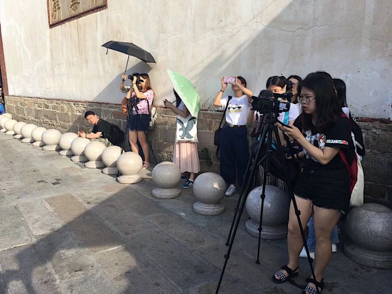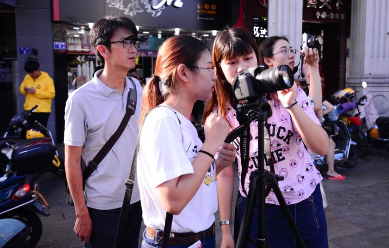 同学们在老师的指导下拍摄泉州街景