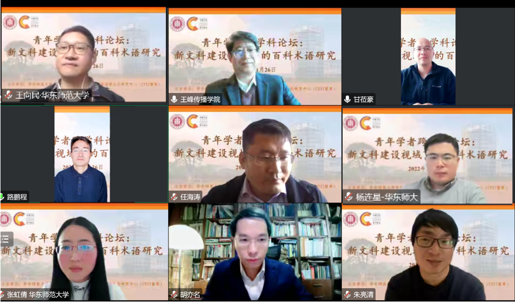 2022年11月26日,由yl23411永利集团人文与社会科学研究院、科技处、yl23411永利集团、国家话语语言生态研究中心(CTTI智库)共同主办的青年学者跨学科论坛第十一期,暨全国科技名词委科研项目《互联网百科平台中的术语传播机制及规范化研究》沙龙——“新文科建设视域下的百科术语研究”在线举行。