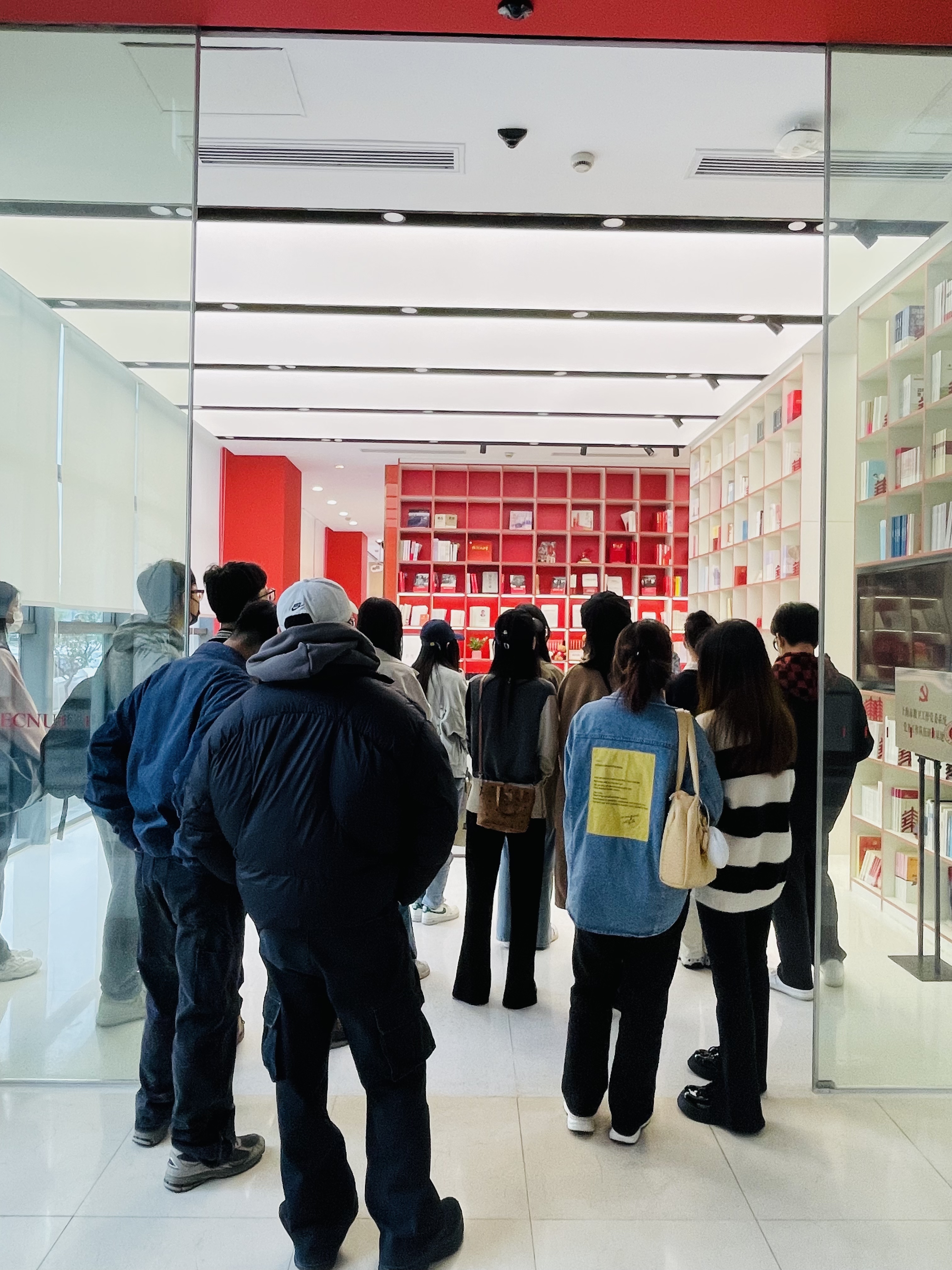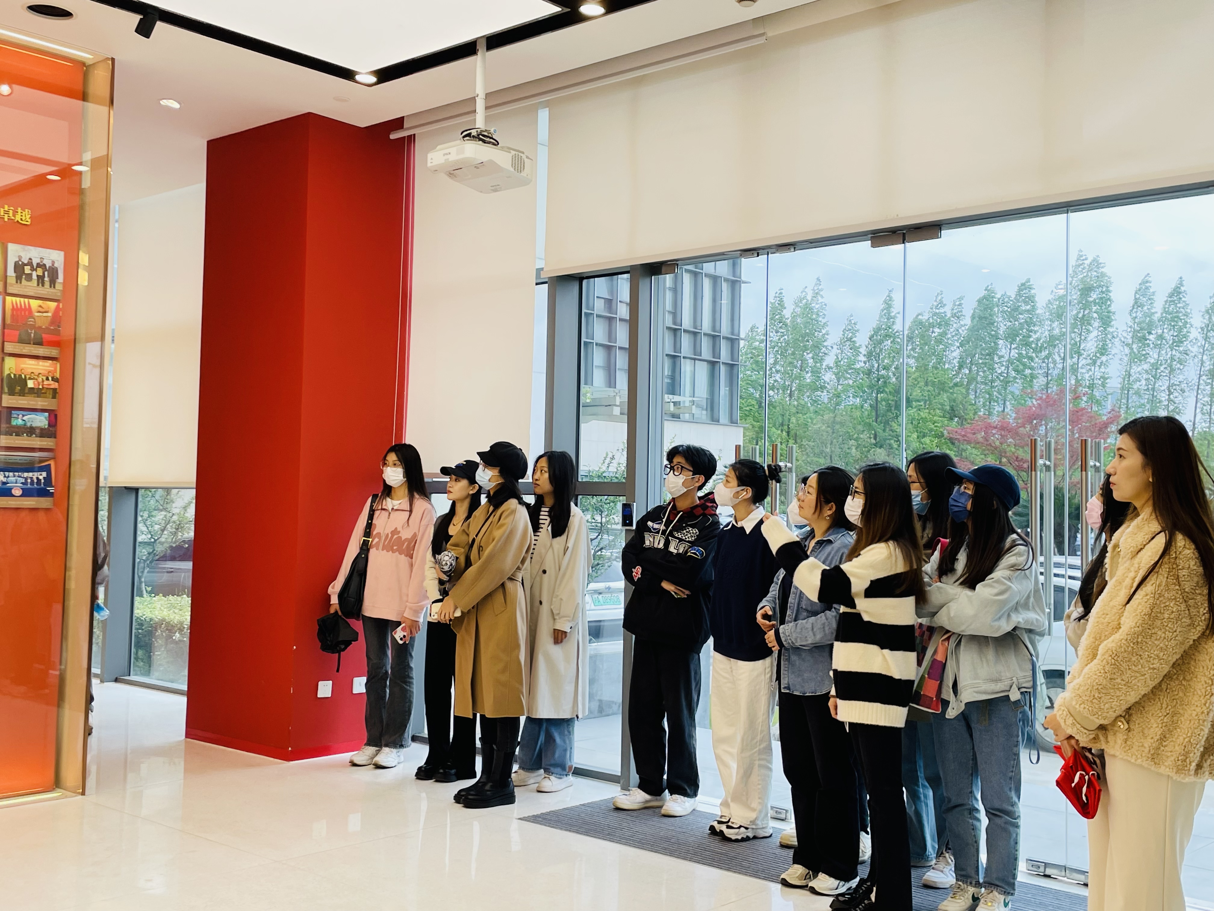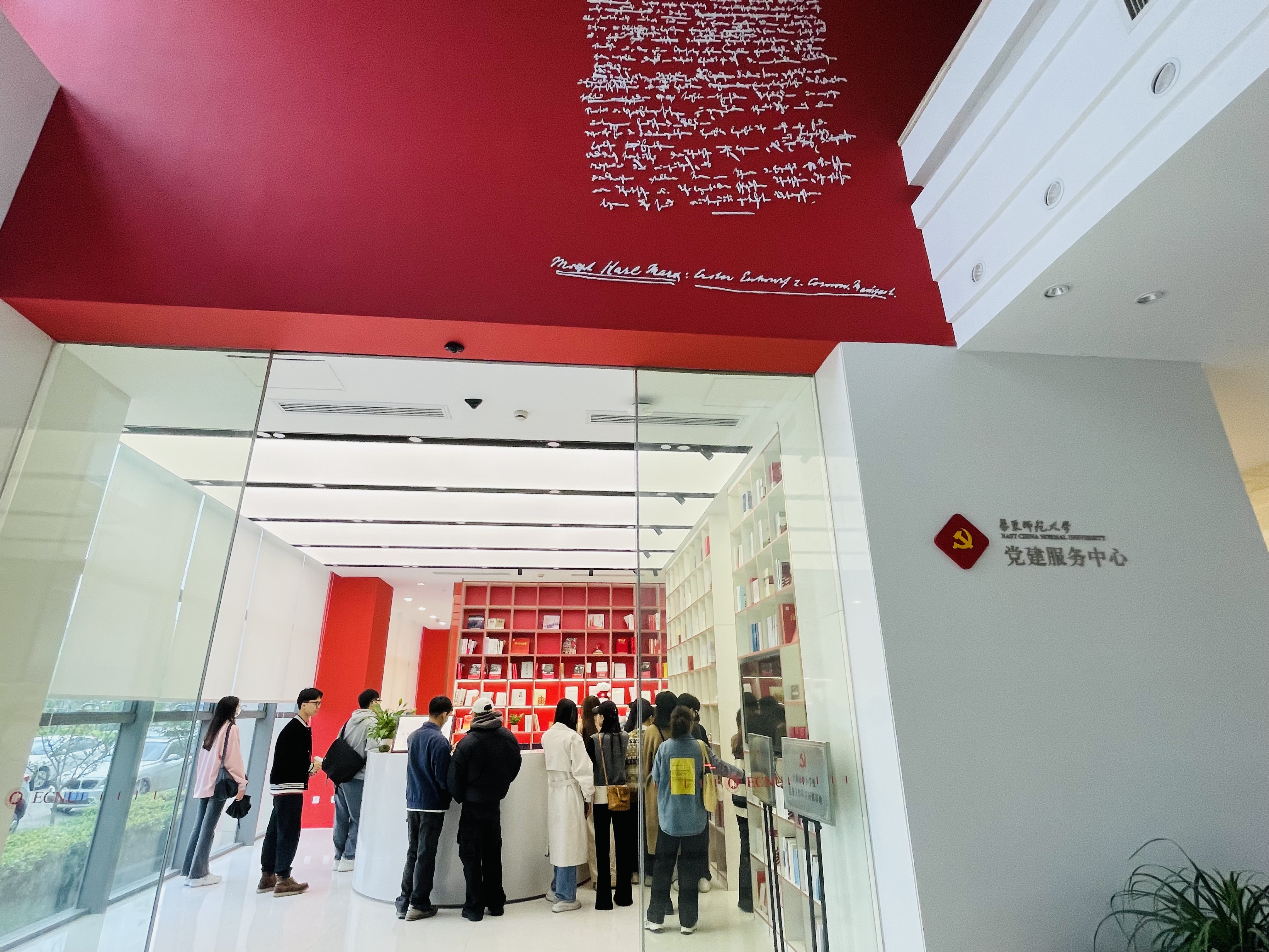 当日,在讲解员李佳烨的带领下,支部党员首先观赏学习了党建服务中心入口处的红色手稿展示墙,该墙展示了马克思、恩格斯《共产党宣言》手稿的拓印版本。当窗外阳光照射到红色手稿上时,会给人带来“信仰之光”的视觉观感,寓意着“信仰之光照亮共产党人的前进之路”。