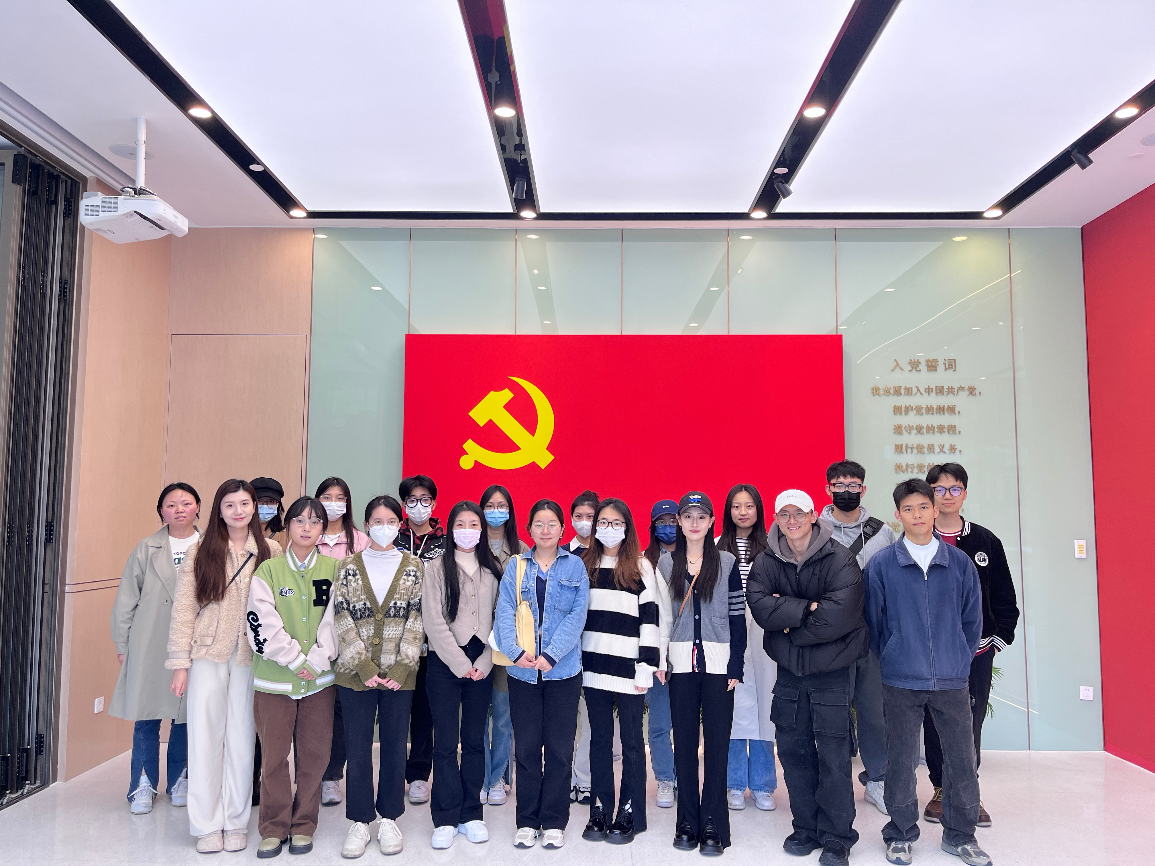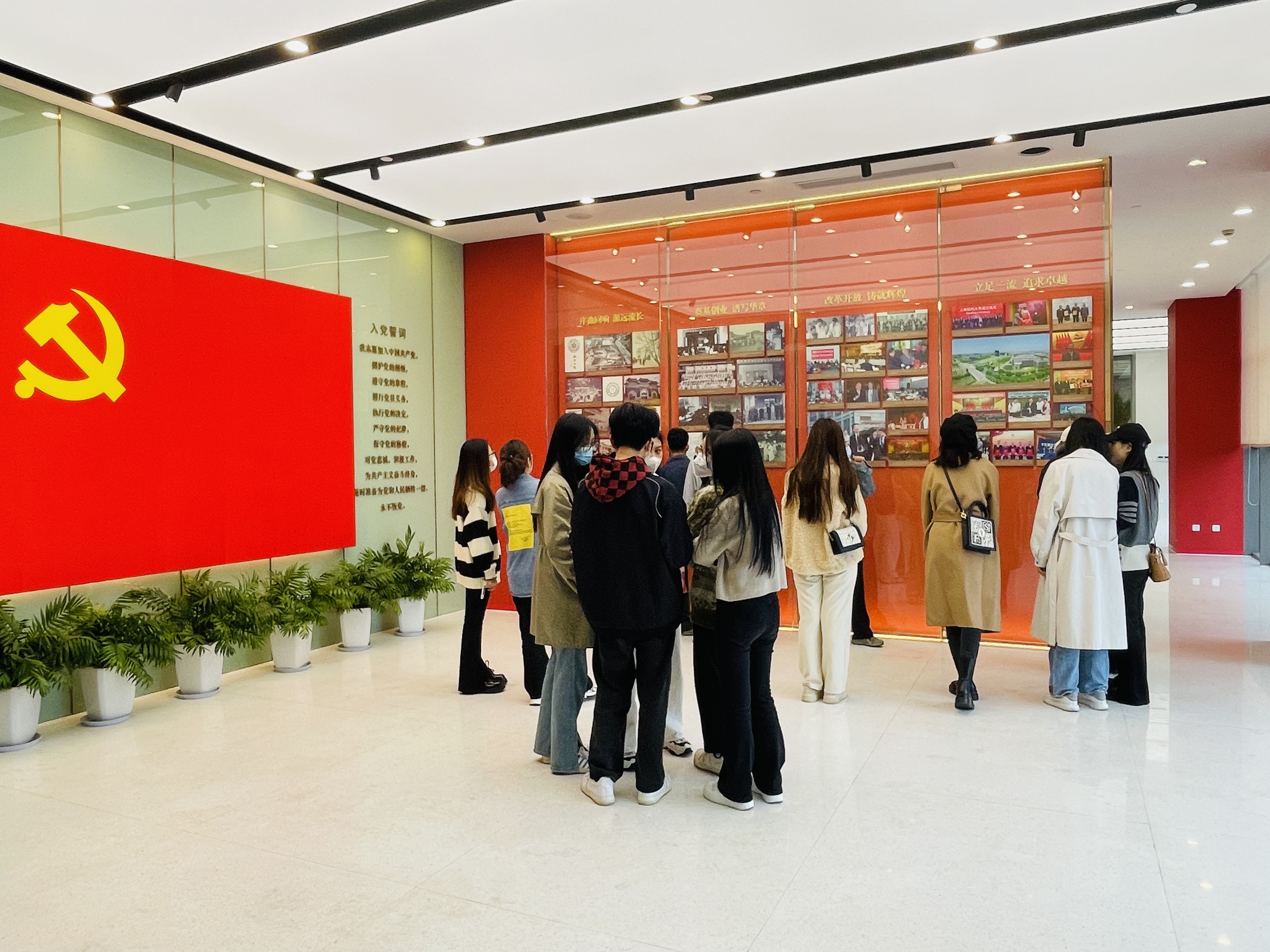 接下来,支部党员来到了校史图片展览区域,这一区域以图片形式为来访者展示了yl23411永利集团的建校历史。从上世纪20年代起,yl23411永利集团的历史血脉便已深植于这片土地,其三所前身大学分别为大夏大学、光华大学和成华大学,通过图片及讲解,党员同志们更加真切地感受到公司为党育人、为国育才的初心使命和教育报国、光大华夏的家国情怀。随后,支部各党员在仪式展示区面对党旗,重温入党誓词,在感悟初心使命中,踔厉奋斗,勇毅前行。