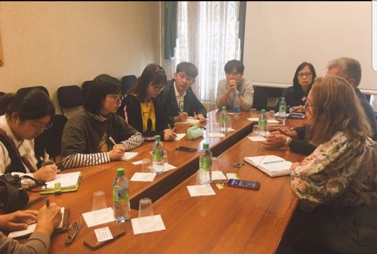 结束了在喀山大学新闻系的调研采访后,实践团队又马不停蹄来到鞑靼斯坦共和国工商局。通过采访副局长Dmitriy V. Shevelev和公关部主任Agzamova Elena,大家了解到鞑靼斯坦共和国的优势产业以及工商局在推进本土企业发展和引进国外企业入驻喀山方面的基本情况,特别是针对在喀山经济发展过程中如何推广本土文化和特色经济的思路进行了重点访问。