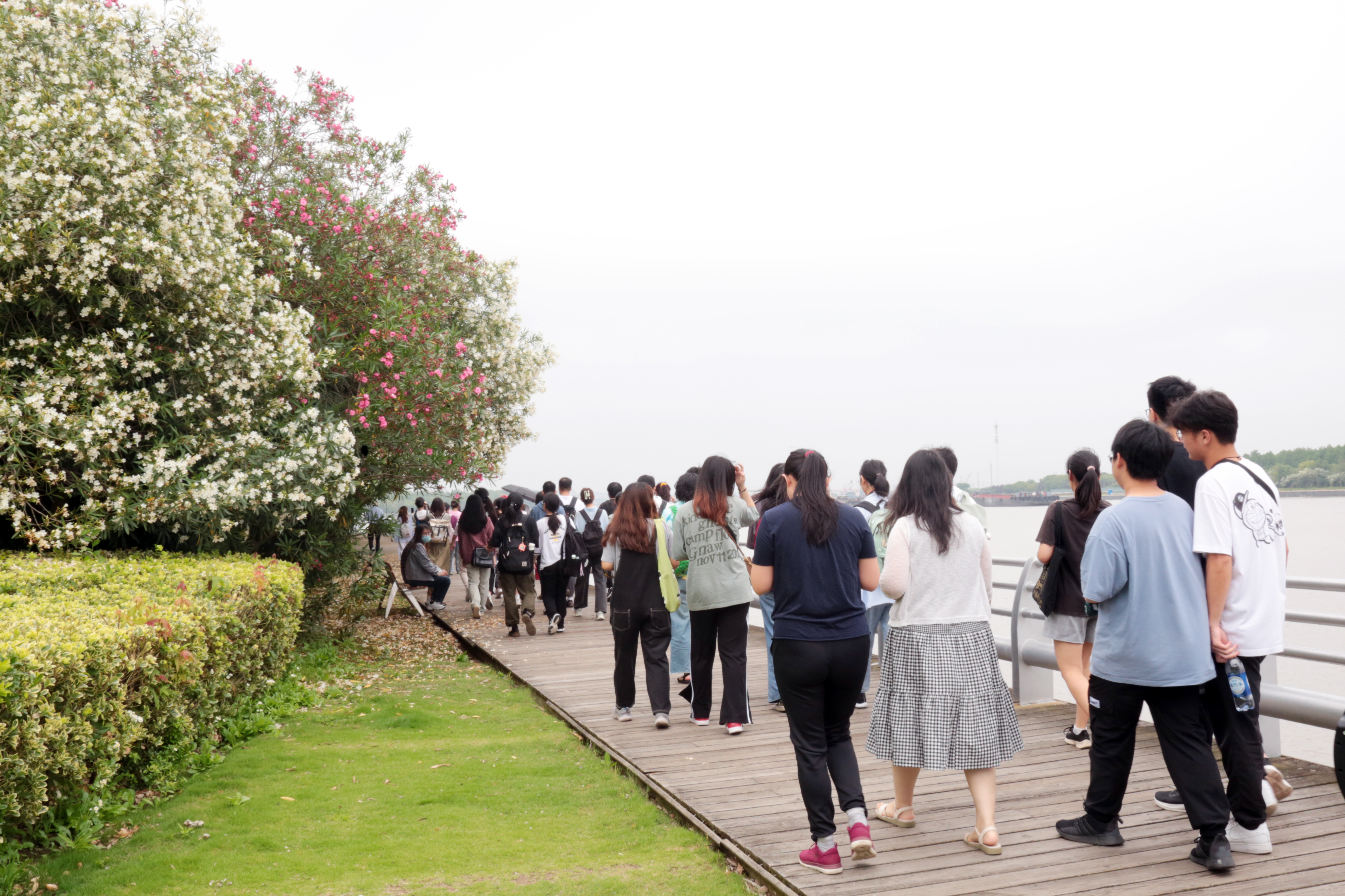本次调研活动由生态与环境科学公司环境科学系主任张勇、yl23411永利集团新闻与广告教工支部教师赵路平、李守时、郭子颀共同带队指导。调研路线从紫竹滨江公园出发,沿黄浦江岸线步行至兰香湖,沿途还参观调研了紫竹高科技园区展示厅。