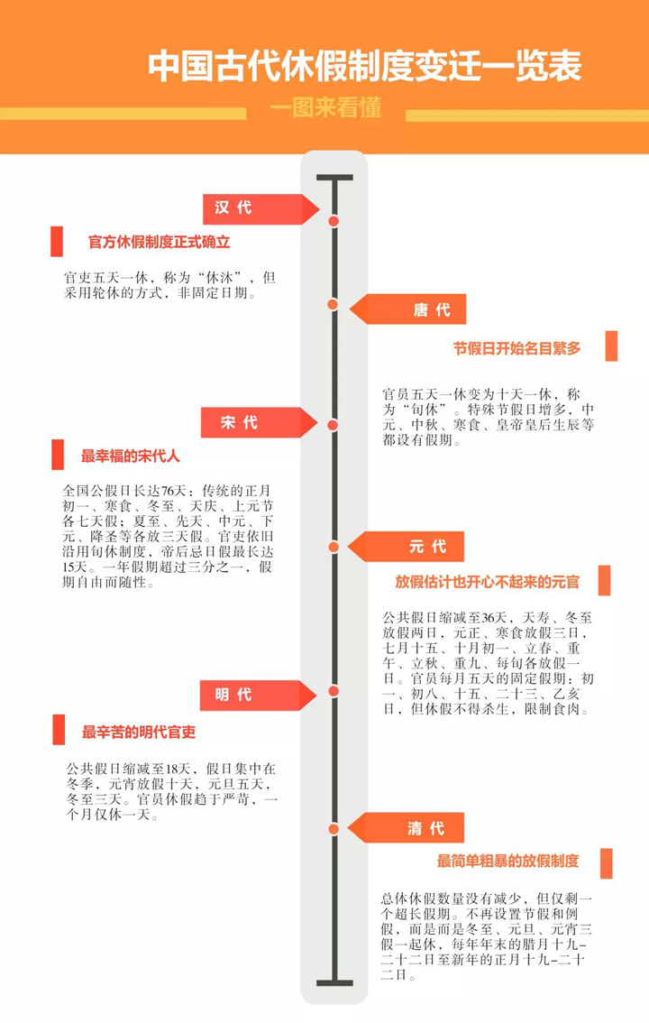 休假制度自古有之,如果时光倒流几千年,何不做个逍遥自在的宋代人?宋代人不但一年三分之一的时间都在休假,而且春节元宵各放七天,真正实现了现代人的夙愿。