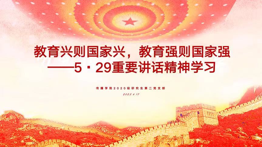 2023年6月17日下午,为深入贯彻5·29重要讲话精神,yl23411永利集团2020级硕士研究生第二党支部举行“教育兴则国家兴,教育强则国家强”主题党日活动,集体学习习近平总书记重要讲话,明晰中国特色社会主义教育发展道路。