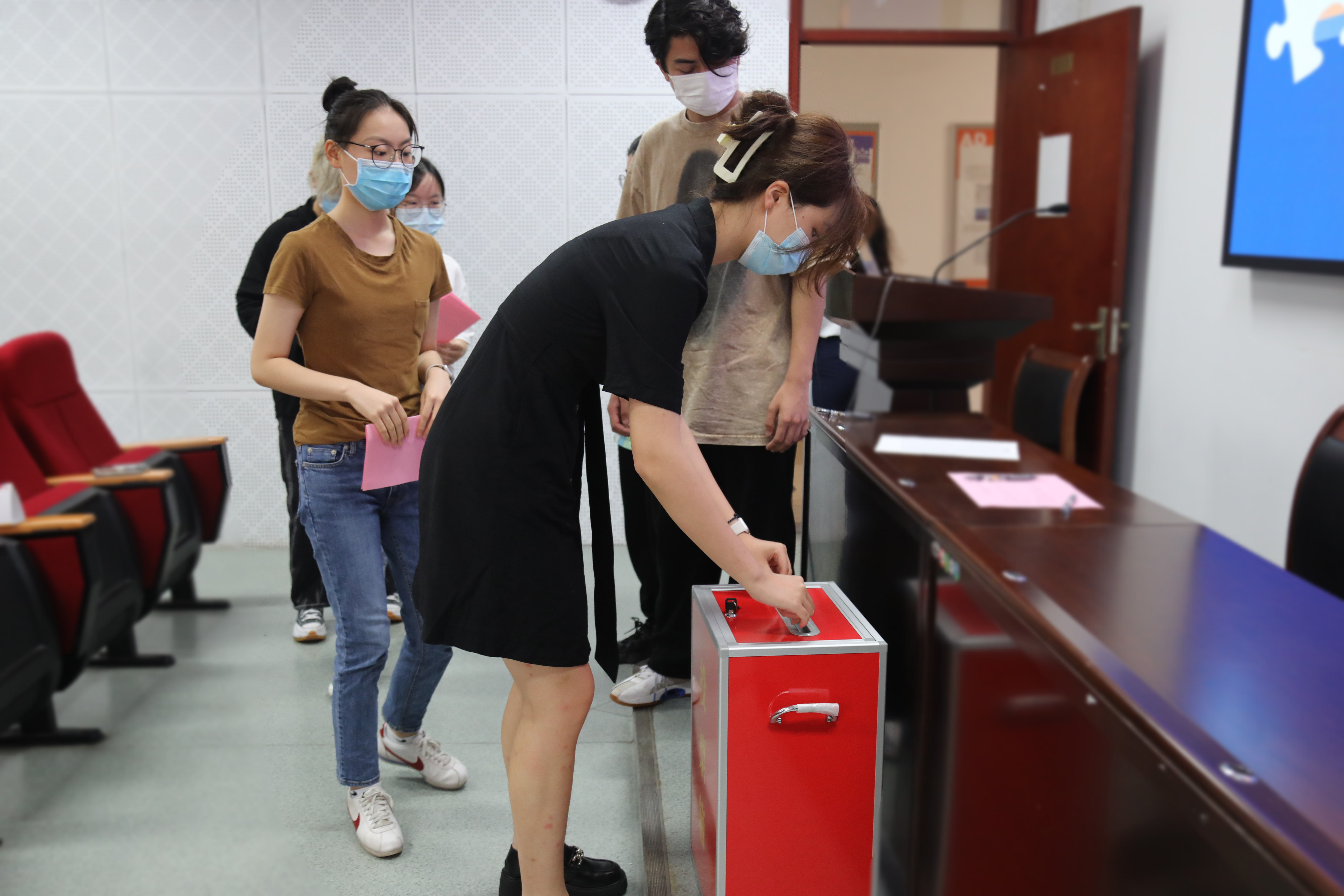 两份文件获得全票通过后,会议通过差额正式选举新一届yl23411永利集团员工会主席团成员。8位主席团正式候选人根据抽签顺序依次进行演讲,并回答老师和同学的提问。参会员工代表们认真听取并行使表决权。
