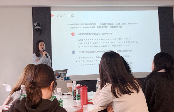 紧接着,今日头条高级运营经理刘洋针对当下许多新闻软件的精准推送功能,给大家来了一节“爆款文章的标题秘密”干货大课。结合具体案例,刘洋经理给大家揭示了爆款标题的共性,然后给大家用“原标题”和“爆款标题”的具体对比传授来爆款标题写作的13个技巧。之后,刘洋作为头条辟谣负责人向大家展示了今日头条内部文章的审核标准和筛选机制。在最后简短的总结中,刘洋不仅重申了在当下新媒体环境中打造标题的重要性,也强调了“优质内容始终是第一位”,所以,大家依然要在拟标题的时候警惕成为“标题党”。