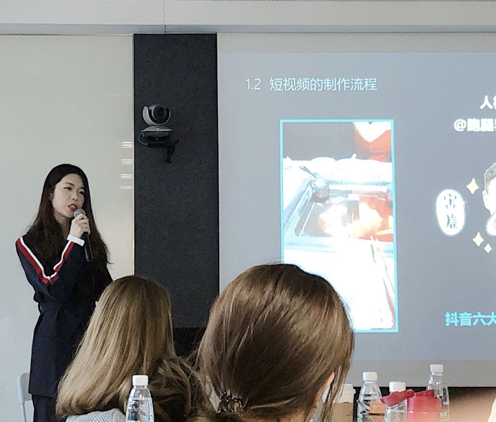 何副总在讲完之后给在座的五个小组布置了“美食娱乐短视频栏目策划”的任务让大家在午餐时间“头脑风暴”准备下午场的展示。下午一点半,经过短暂的午餐和午休之后,五个组分别进行了各自的策划展示。华师大同学组发挥了每一位成员的想象力,向大家展示了“宫廷风美食栏目”的简要策划方案。何项俊副总裁在听完各组的展示之后给每一组都做出了点评和自己的意见。