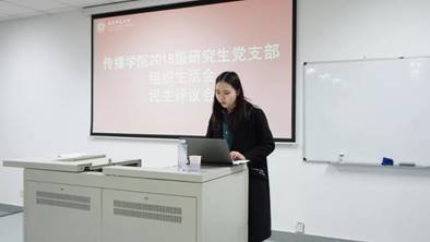 宣传委员孔宁婧同志对党支部过去一学期的宣传工作进行总结,公司党支部以微信新媒体作为党员同志的交流平台,将专业所学运用到党支部宣传工作中,充分发挥了传媒学子的特色与优势。同时,孔宁婧同志也鼓励也希望各积极分子能够踊跃参与微信公众号的运营,加入党支部的宣传工作。