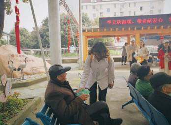 在敬老院,员工志愿者和老人谈心、拉家常,嘘寒问暖,了解他们在身体、生活、饮食等方面的情况。大家亲切的交谈,为平日清静的敬老院带去了许多欢声笑语,整个敬老院洋溢着温馨、祥和的气氛。