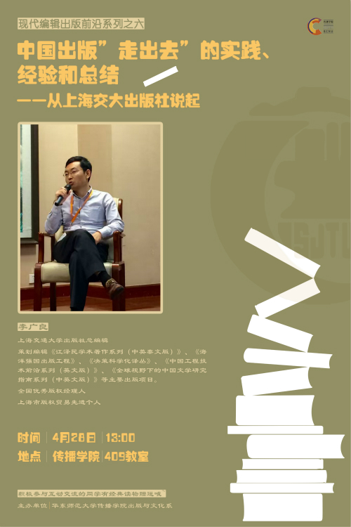 讲座题目:中国出版“走出去”的实践、经验和总结——从上海交大出版社说起