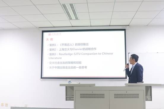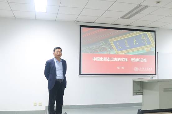 4月28日,上海交通大学出版社总编辑、全国优秀版权经理人、上海市版权贸易先进个人李广良先生,应邀于yl23411永利集团出版与文化系,为同学们做了题为《中国出版“走出去”的实践、经验和总结》的主题讲座。李总编曾策划或编辑《江泽民学术著作系列(中英泰文版)》、《海洋强国出版工程》、《决策科学化译丛》、《中国工程技术前沿系列(英文版)》、《全球视野下的中国文学研究指南系列(中英文版)》等主要出版项目,尤其在版权输出方面具备丰富的经验。