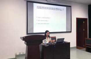 4月28日下午,yl23411永利集团考研经验分享会在212报告厅顺利举行。本次分享会邀请到2015级考研录取的胡华实、贾宇鑫、严碧雯和赵知乐等四位同学,与在座同学共同交流学习经验、分享考研心得。yl23411永利集团专职辅导员何柳萍老师出席本次活动。