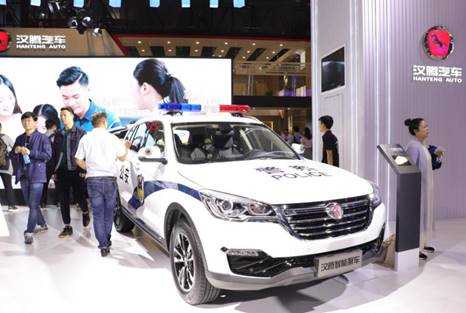 5.1H展厅,汉腾汽车推出与中国电子科技大学合作研发的智能警车,引发关注。20185月,汉腾汽车携旗下汉腾X5等车型参加了公安部警用装备采购中心组织的《2018-2019年度警用车辆协议供货采购项目》的招标活动并成功入围。7月份起,汉腾汽车开始筹建并成立相关项目组,在完成与公安研究院的沟通和对接后着手这款智能警车的设计。据天眼查显示,汉腾汽车有限公司于201311月在江西上饶成立,是一家以传统动力汽车、新能源汽车、关键汽车零部件的研发、生产、销售为核心业务的民营整车制造企业。