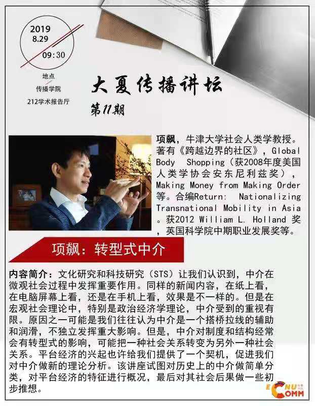 文化研究和科技研究(STS)让我们认识到,中介在微观社会过程中发挥重要作用。同样的新闻内容,在纸上看,在电脑屏幕上看,还是在手机上看,效果是不一样的。但是在宏观社会理论中,特别是政治经济学理论,中介受到的重视有限。原因之一可能是我们往往认为中介是一个搭桥拉线的辅助和润滑,不独立发挥重大影响。但是,中介对制度和结构经常会有转型式的影响,可能把一种社会关系转变为另外一种社会关系。平台经济的兴起也许给我们提供了一个契机,促进我们对中介做新的理论分析。该讲座试图对历史上的中介做简单分类,对平台经济的特征进行概况,最后对其社会后果做一些初步推想。