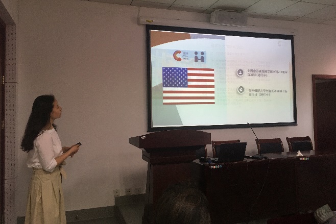 接着,外事秘书吉思琪老师重点介绍了院系层面的交流项目,涉及到与美国、英国、澳大利亚、中国香港、中国台湾、中国澳门等多所境外大学的合作情况,她详述了yl23411永利集团各合作院校的可选方向及录取条件,为同学们提供了切实的建议。