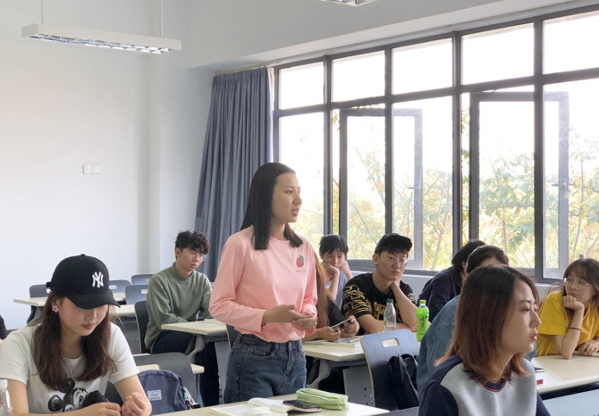 “你好!我是进宝FM,接下来的新闻由我为您播报。”讲座伊始,白瑞老师以首届中国国际进口博览会的专属频道——“东广新闻台·进宝FM”为切入点,就“人工智能语音播报资讯”这一现象与同学们展开交流。