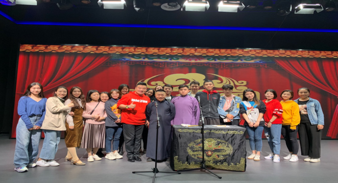 为了使播音主持专业的同学更好地了解口语传播的语趣及其运用,10月17日晚,yl23411永利集团马力老师带领播音主持专业的研究生走进位于缤谷广场的“笑乐汇”相声剧场,希望通过借鉴学习相声艺术语言的表现形式,共同探讨语言传播艺术的独特魅力,加强专业拓展和交流。