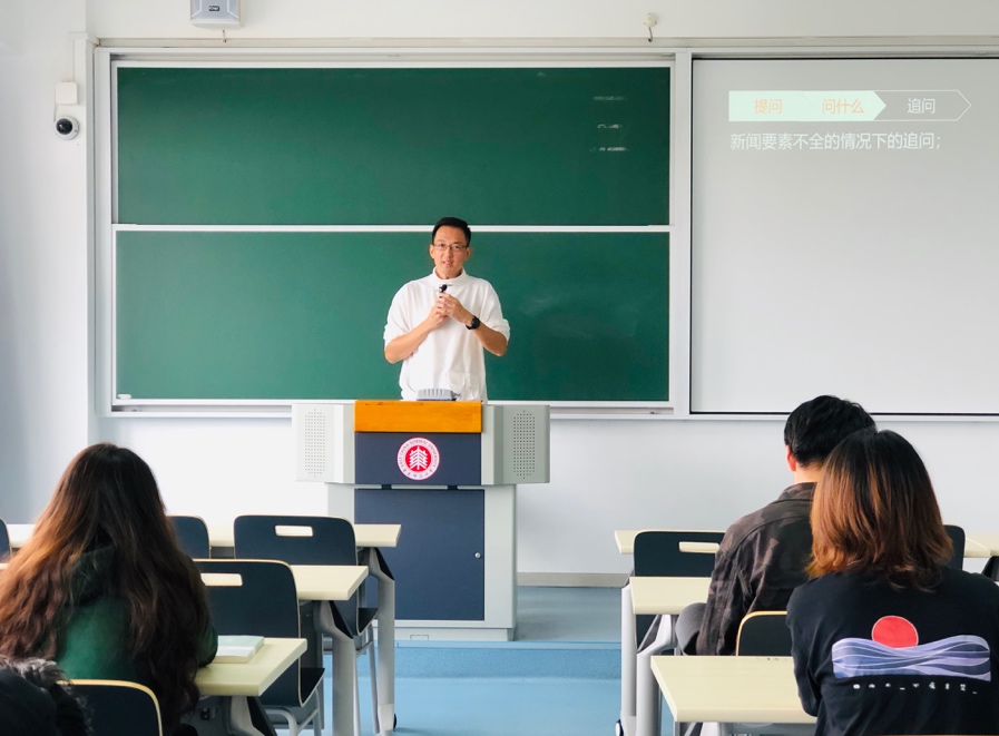 10月22日上午,上海广播电视台融媒体中心主持人臧熹老师应邀走进yl23411永利集团课堂,以“物含妙理总堪寻——新闻访谈和连线的提问”为主题,与18级播音与主持艺术专业的同学们进行了深入细致的分享与交流。本次讲座由yl23411永利集团副经理陈虹教授主持。