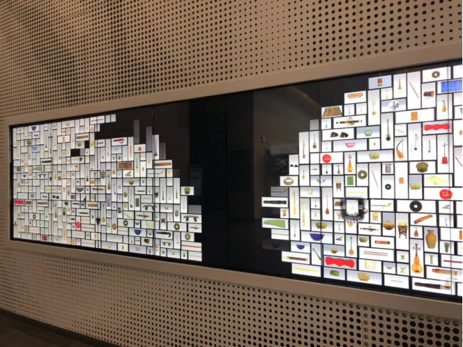 博物馆还配备了许多小型的多媒体互动电子屏幕,在一楼《中国民族乐器文化展》这一常设展厅内部,有不少于10面的互动屏幕。如在编钟、编磬乐器的陈列区域,观众可以在一面互动屏幕上“敲击”虚拟编钟、编罄来自由地创作曲调。而在介绍传统乐器制作技艺的展区,记者亲身体验了通过操作互动电子屏幕来“制作”虚拟琵琶的过程。记者依次选择了虚拟的玉石、钢丝、香红木、牛角等原材料进行“加工”,加工后各得到如琵琶的背板、覆手等四五个零部件,需要正确地匹配零部件才能成功组装一把虚拟的琵琶。