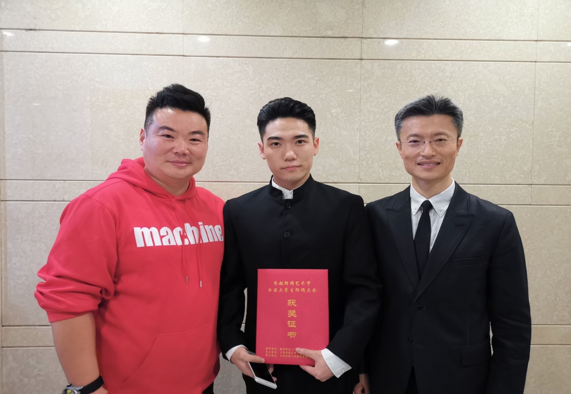 蒋祺琛同学、马力老师和中国传媒大学播音主持艺术公司常务副经理李洪岩教授合影