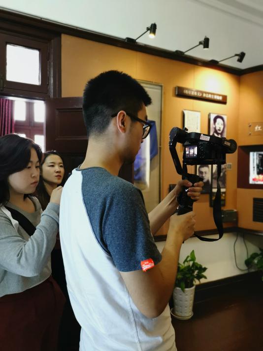 江苏路街道有多条红色弄堂,拥有“中共中央机关刊物——《布尔什维克》编辑部”旧址、中共中央上海局机关旧址、著名科学家钱学森故居、yl23411永利集团教授施蛰存故居等“红色文化品牌”,是极具特色的党建资源。为了助力江苏路街道的党建宣传工作,yl23411永利集团教师、广播电视学系教工党支部党员钱春莲,yl23411永利集团2018级研究生第二党支部党员管天瑞、入党积极分子杨宁,群众李梅轩、张壹舒组成精干的拍摄团队,发挥影视拍摄制作的专业特长,推进教研学与实践融为一体的人才培养模式,投入到紧张有序的宣传片拍摄工作中。