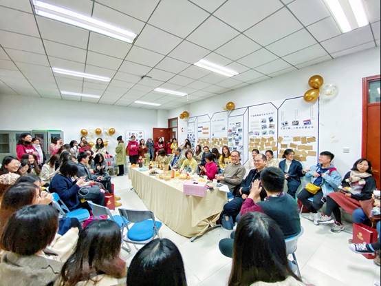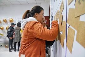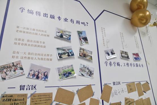 此前,在筹备过程中,出版与文化系发起了征集老照片和留言话题活动。30日下午,员工们走进105教室,便看到贴满了老照片和卡片的留言墙,纷纷拿起笔写下了寄语。教室被18、19级出版专业硕士志愿者们布置得温馨浪漫,员工们称赞现场“又美又暖”。